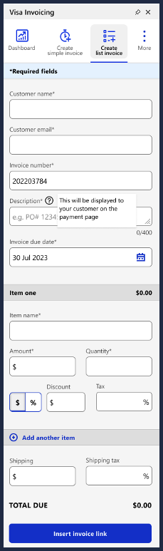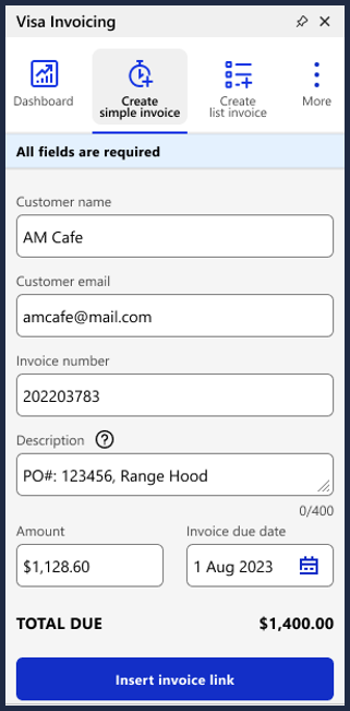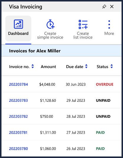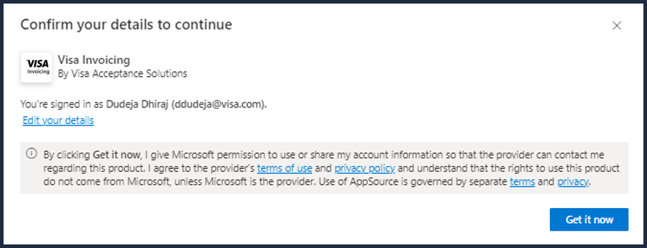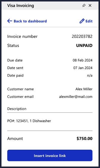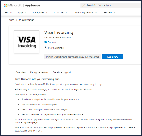 offers the Visa Invoicing Add-In. The