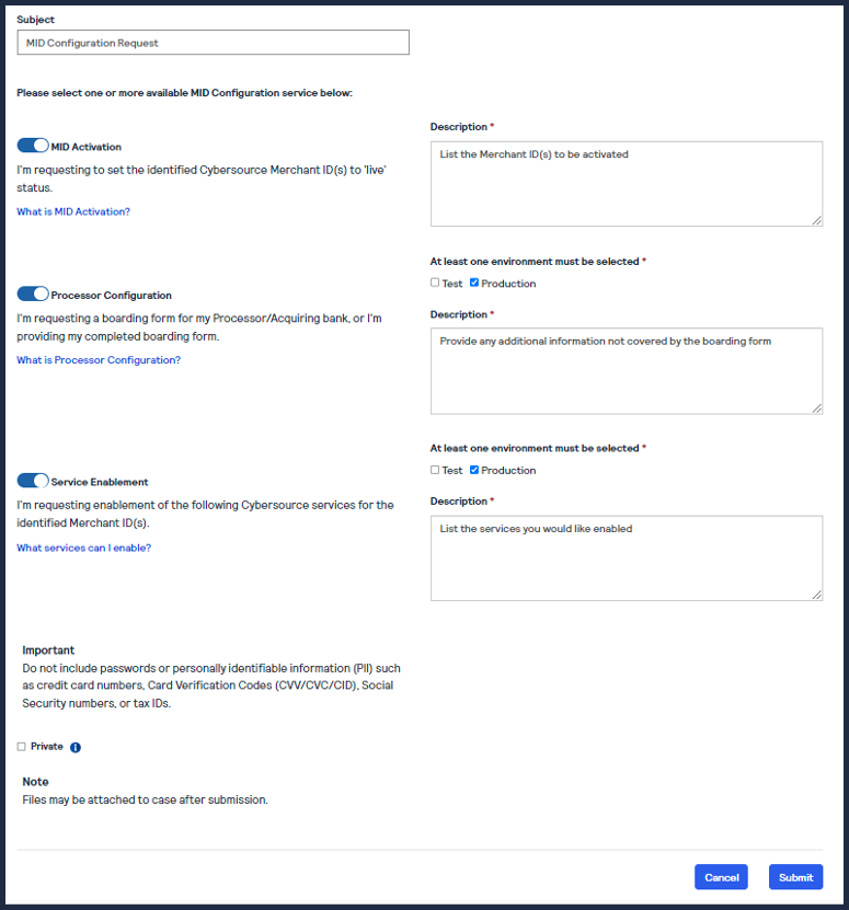 Reseller/Partner’s contract with Visa/Cybersource.Visa Platform Connect