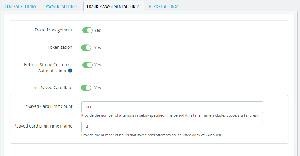 - Select theFRAUD MANAGEMENT SETTINGStab.