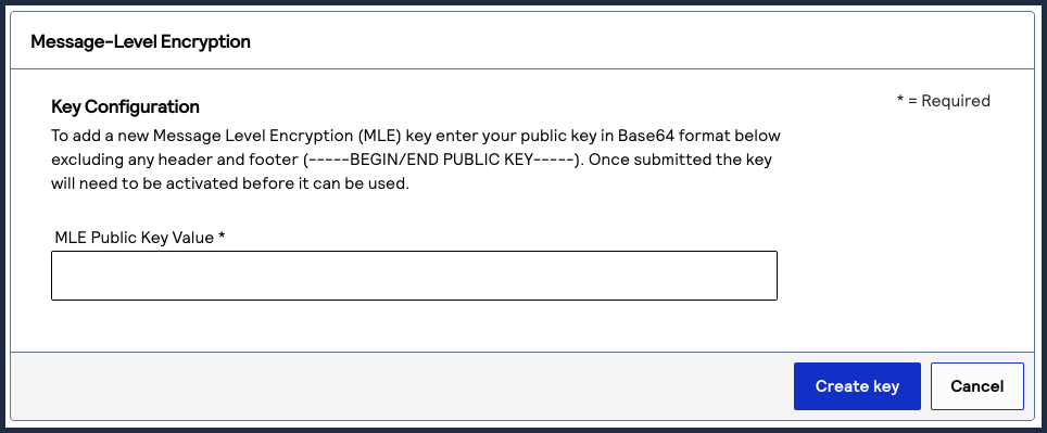 - Create a digital signature key by sending acreate a digital signature keyrequest toCybersource. You may have already completed this requirement while setting up your first webhook subscription. For more information, see Create a Digital Signature Key.